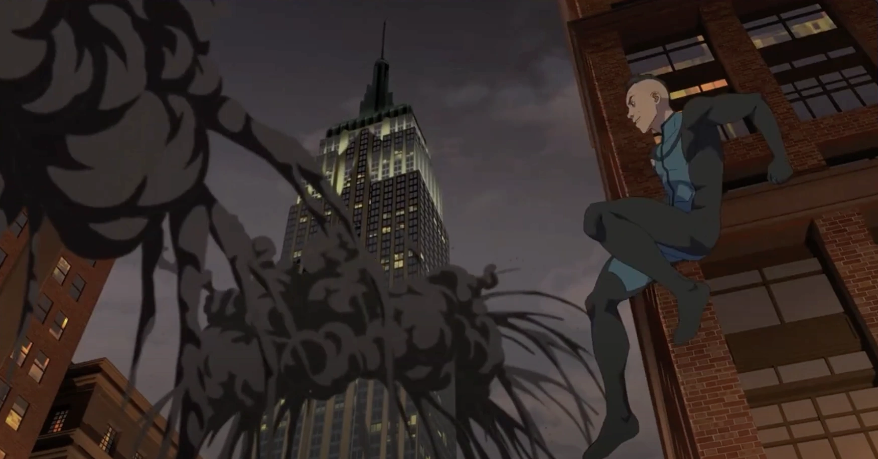 Viltrumincible fights Wolf-Man after crashing through the Empire State Building.